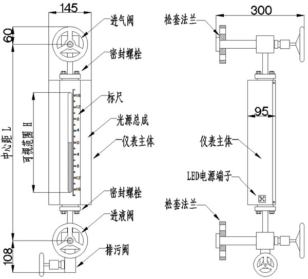 5 安裝中心距L與可視范圍H,也可根據(jù)用戶要求設(shè)計制做: